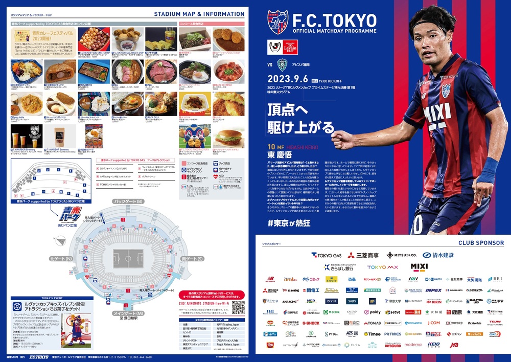 9/6(周三) 福岡戰 官方比賽日程表說明 2023/9/5 比賽資訊 9月6日(周三) 2023 J聯賽YBC雷文盃 Prime Stage 四分之一決賽 第1戰 vs Avispa福岡(19:00開球/味之素體育館)的官方比賽日程表,相關說明如下。 □官方比賽日程2023</span></strong>【訪談】東慶悟 選手・頁數:B4尺寸(對折) 4頁※可從頁面底部的PDF查看。 ◇比賽資訊請點這裡 ▽以PDF格式查看請點此 2023官方比賽日程節目(0906 YLC準決賽 Avispa福岡).pdf
