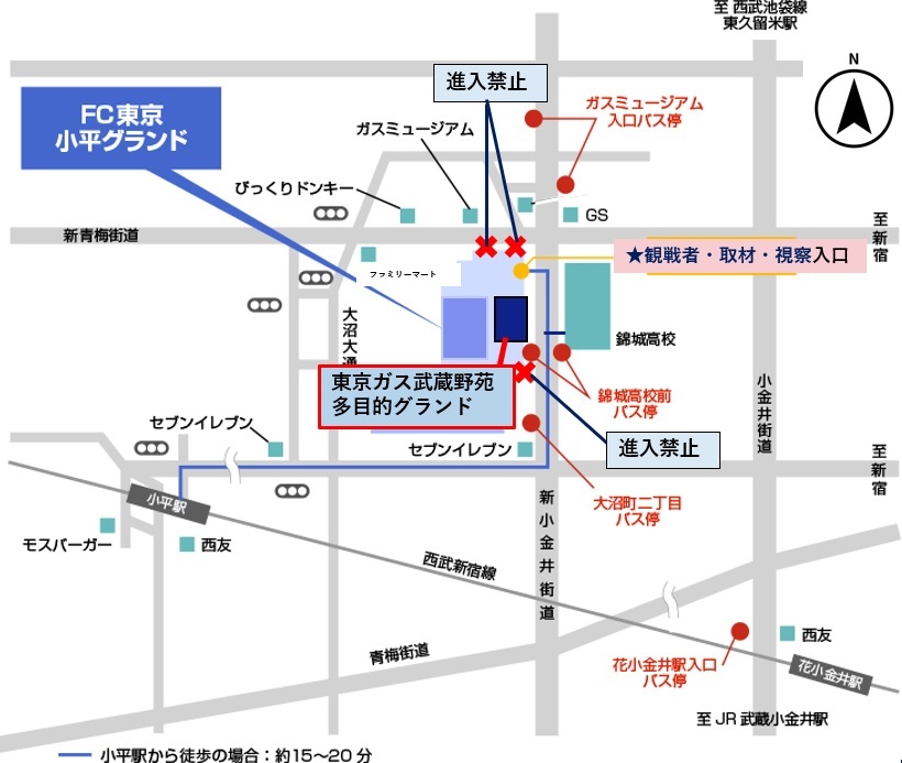 JR中央線「武藏小金井站」下車,搭乘西武巴士(21路線 往東久留米方向)於「錦城高校前」下車,步行1分鐘