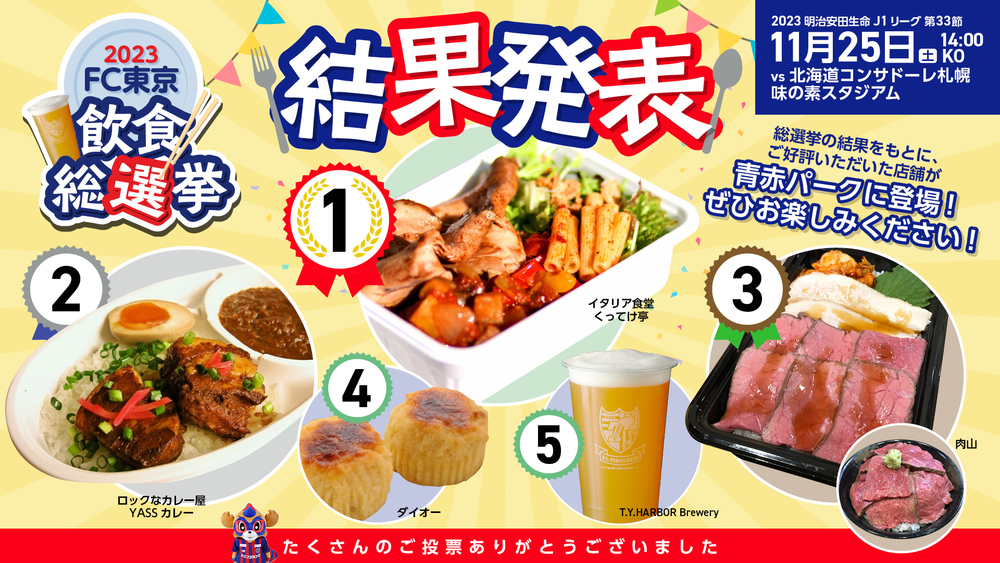 2023 FC東京 飲食總選舉的結果為基礎,邀請廣受好評的店家參展。