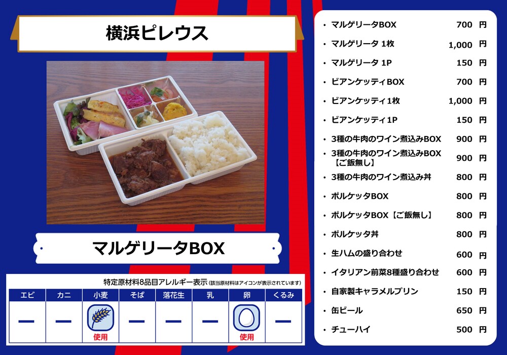 11月25日(周六)北海道Consadole札幌戰的AO-AKA PARK supported by TOKYO GAS(場外)、體育館內走廊(場內)販賣部販售的餐飲菜單。