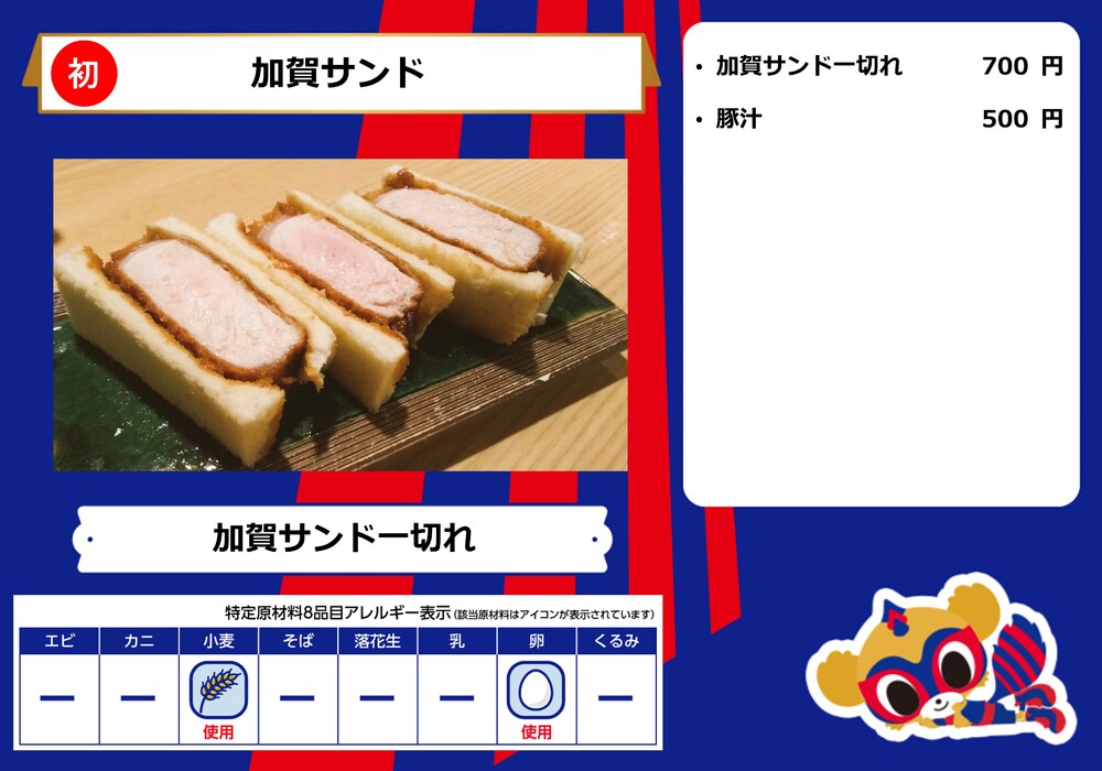 ・2012~2014賽季曾效力於FC東京,現隸屬於Blaublitz秋田的加賀健一選手所經營的加賀Sandro攤位已確定設立。