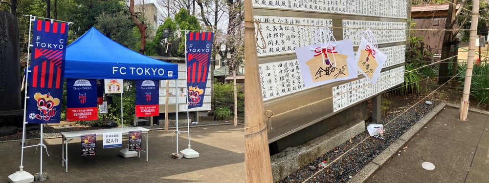 在澀谷區千駄谷大通商店街的一角,鳩森八幡神社的協力下,將於3月30日(周六)至4月7日(周日)期間限定設置FC東京的繪馬掛所於境內。