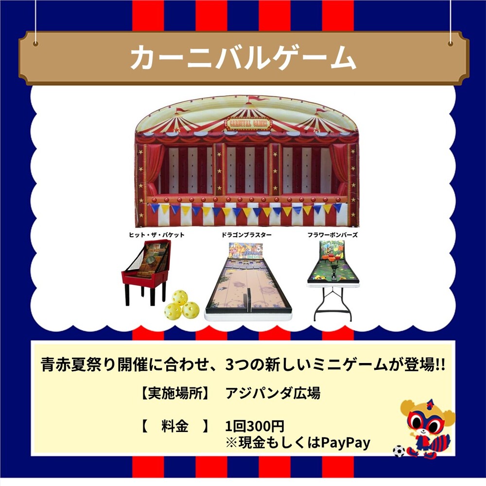 6月30日(周日) 2024明治安田J1聯賽 第21節 Avispa福岡戰 (18:30開球/味之素體育館)舉辦的AO-AKA PARK遊樂設施資訊通知。