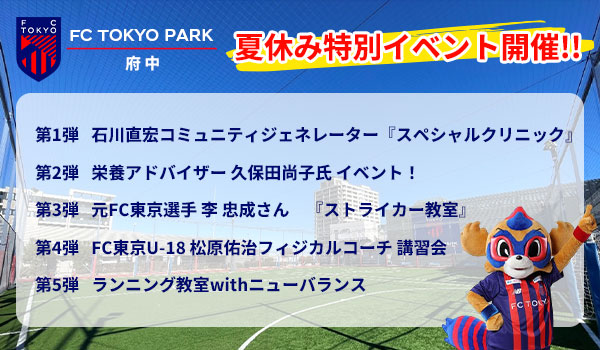 在FC東京公園府中,作為暑假特別企劃,將邀請特別講師陣容舉辦各種活動!