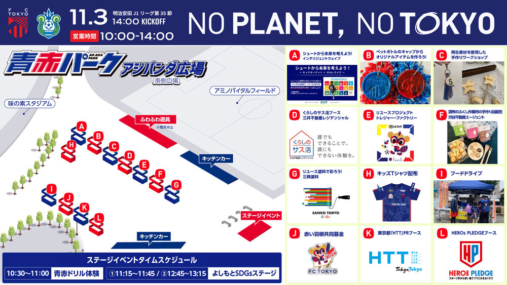 11月3日(周日祝) 2024明治安田J1聯賽 第35節 vs湘南Bellmare(14:00開球/味之素體育館)將舉辦「NO PLANET, NO TOKYO」活動。