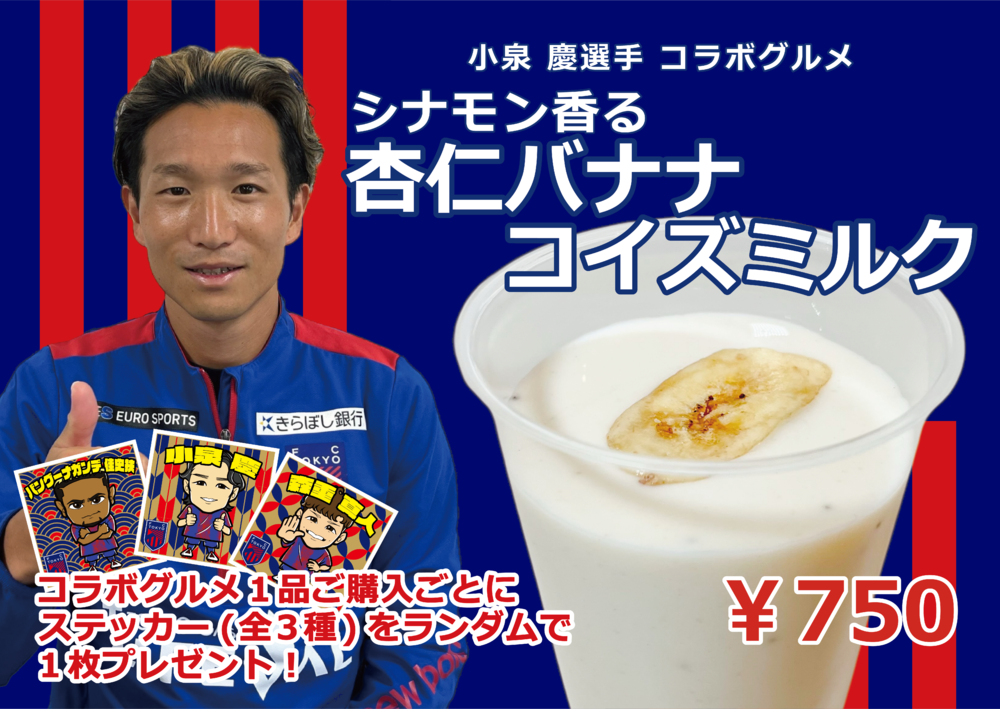 ・10月5日(周六)對陣Sagan鳥栖戰,於「FC TOKYO FOOD FACTORY」決定販售小泉慶選手合作美食「肉桂香杏仁香蕉小泉牛奶」。