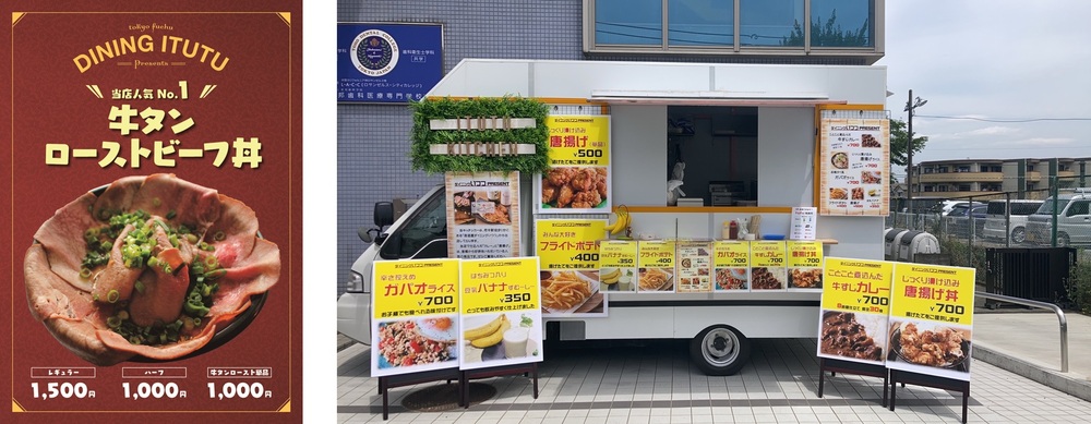 此餐車作為距離府中站步行1分鐘的「Dining Itsutsu」的移動販售車出店。因為可以在餐車販售店內人氣菜單,菜色非常豐富。以府中產的蔬菜等地產地消、紮根於地區的店鋪經營為概念。