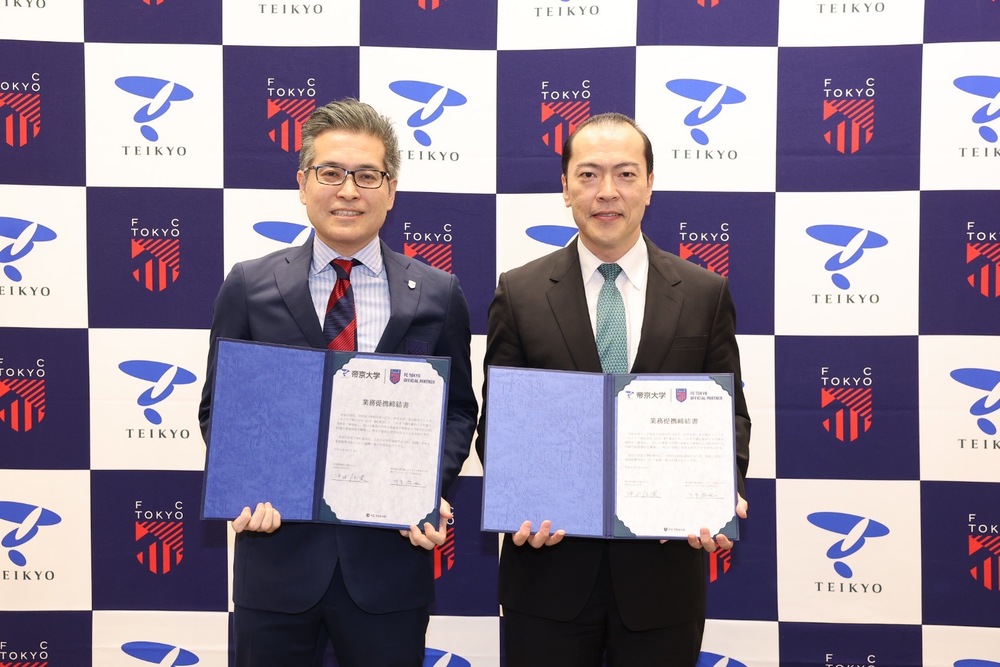 「迄今為止,FC東京與帝京大學在體育商務的特別課程及主動學習等教育活動方面有許多進展,並且也進行了為了全面支援FC東京選手的傷害預防與治療所使用的診所服務及派遣隊醫等。本契約將活用本校引以為傲的「體育醫學科學中心」的功能,依據本校「將所擁有的知識回饋社會並做出貢獻」的經營方針,以及本校體育醫學科學中心「強化日本體育」的願景,期望擴大對FC東京的支援並進一步強化雙方的關係與發展。」