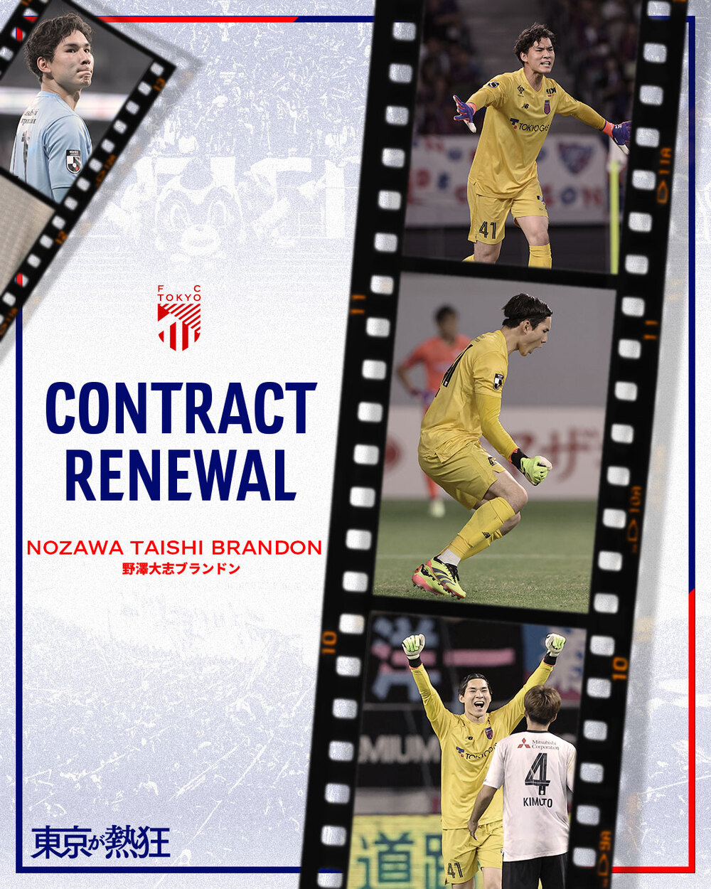 這次FC東京宣布已與Taishi Brandon NOZAWA選手達成2025賽季的合約。