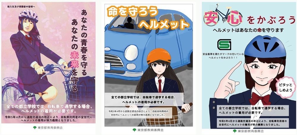 東京都教育廳近年來注意到通學於都立高中的高中生自行車事故有增加趨勢,從令和6年度起,所有都立學校規定自行車通學時必須佩戴安全帽。為了保護自己以及大家的未來,所有世代騎乘自行車時都應佩戴安全帽。