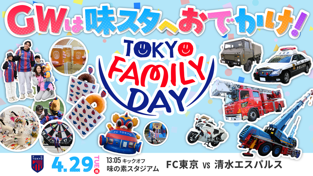 4月29日(周二祝) 2025明治安田J1聯賽 第13節 vs清水S-Pulse (13:05開球/味之素體育館)將舉辦「TOKYO FAMILY DAY」。