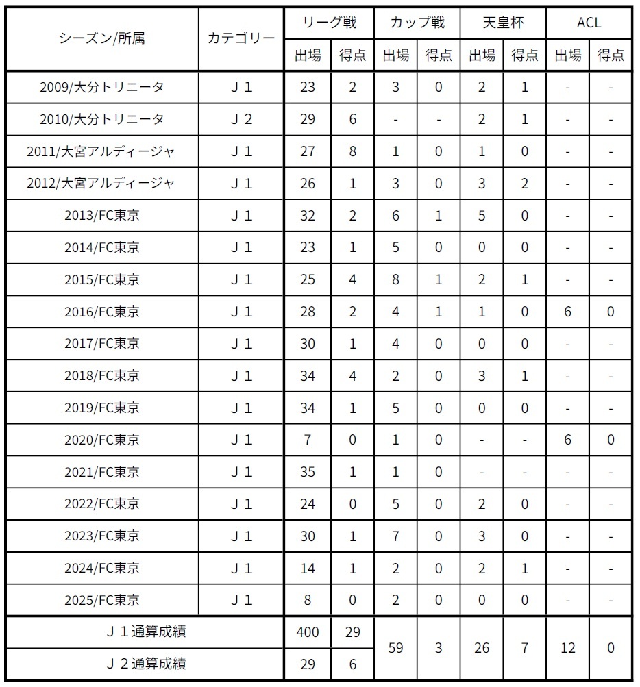 不僅是快樂的事情,也經歷了辛苦與痛苦,感謝大分Trinita、大宮Ardija、FC東京給予我作為選手及作為人的成長機會。