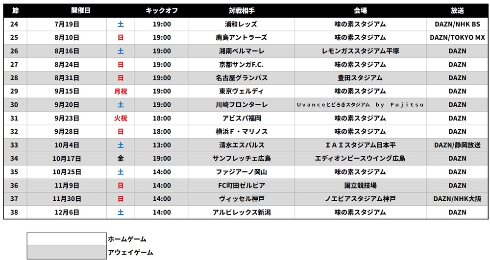 【8/18更新】2025明治安田J1聯賽 下半季賽程發表通知 2025/7/17 來自俱樂部的通知 【8/18追記】第34節Sanfrecce廣島戰的賽程已確定,特此通知。 關於2025明治安田J1聯賽後半賽程,已決定如下,特此通知。 □2025明治安田J1聯賽