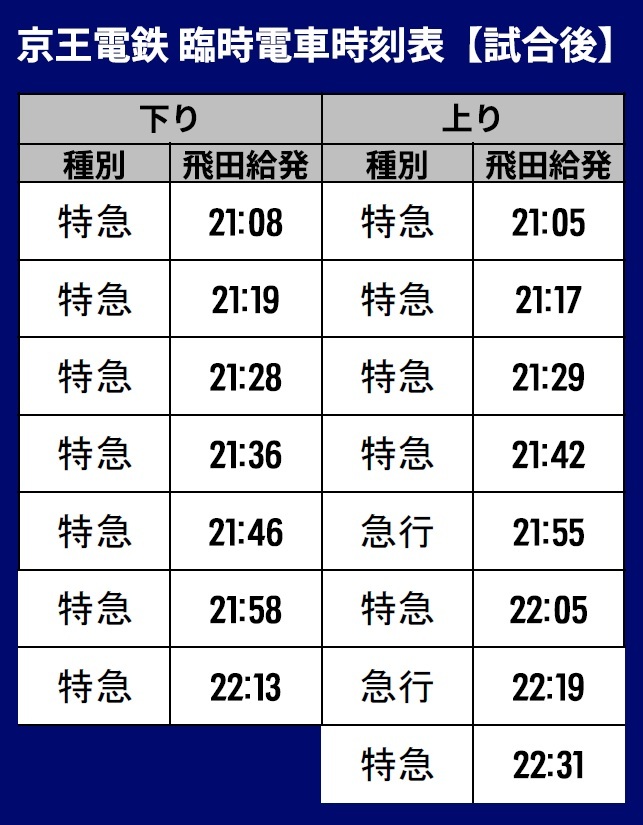 上行…飛田給發車21:05~22:31的特急/共8班