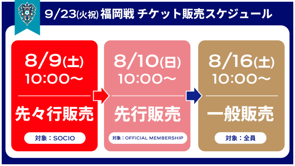 8月9日(周六)的先行販售起,SOCIO會員可享會員價格購買(每場比賽最多4張)。