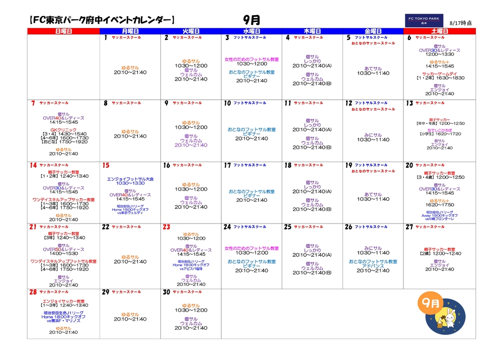 【府中公園】9月普及部教練指導活動參加者募集通知