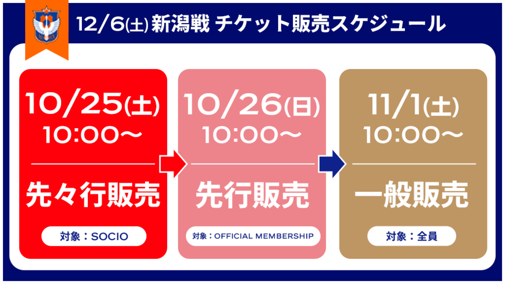 ※SOCIO會員可從預先販售開始購買,OFFICIAL MEMBERSHIP會員可從先行販售開始購買。