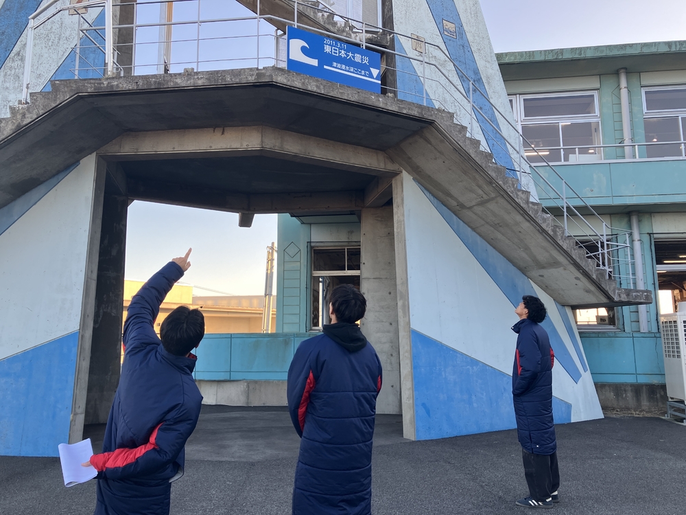 隨同磐城FC前台工作人員,拜訪震災遺構請戶小學,一邊參觀震災當時的情況,一邊了解當時的狀況。