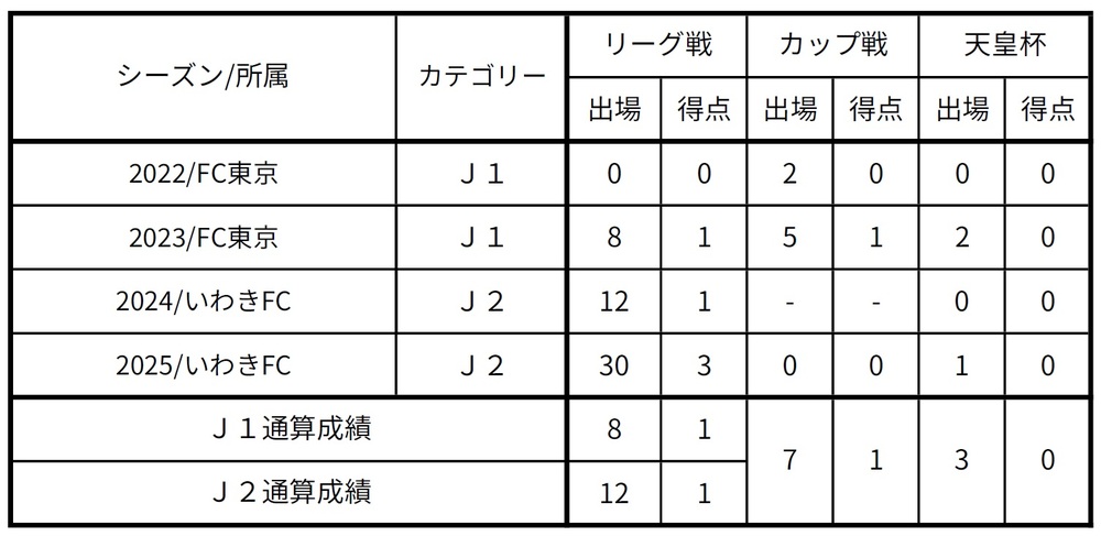 ※2022賽季以FC東京第二種註冊選手身份出賽
