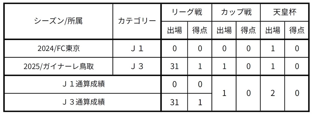 ※2024賽季以FC東京第2種註冊選手身份出賽