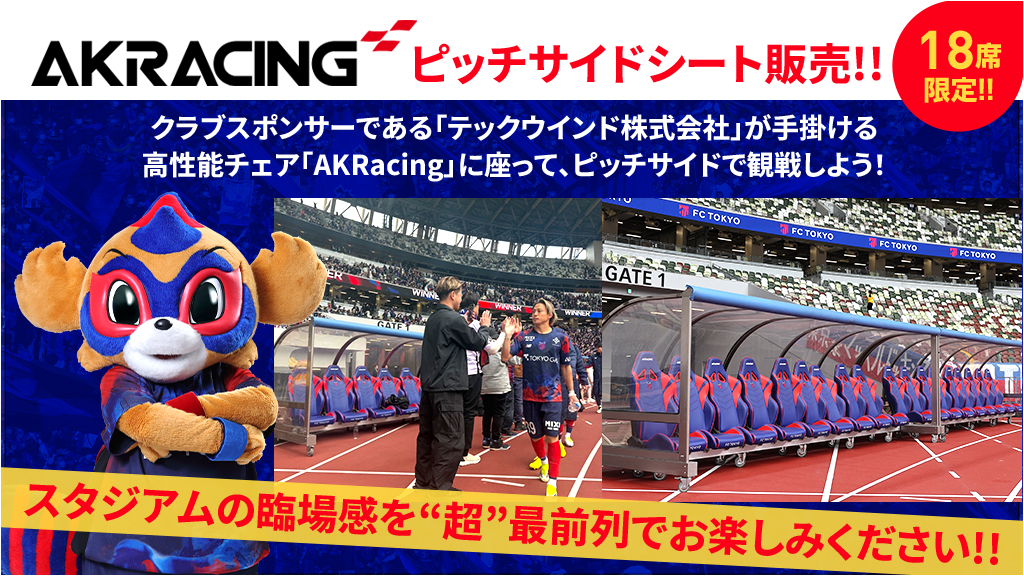 ①您可以在味之素體育館的主場比賽中,坐在FC東京選手實際使用的AKRacing替補席椅上觀賽!
