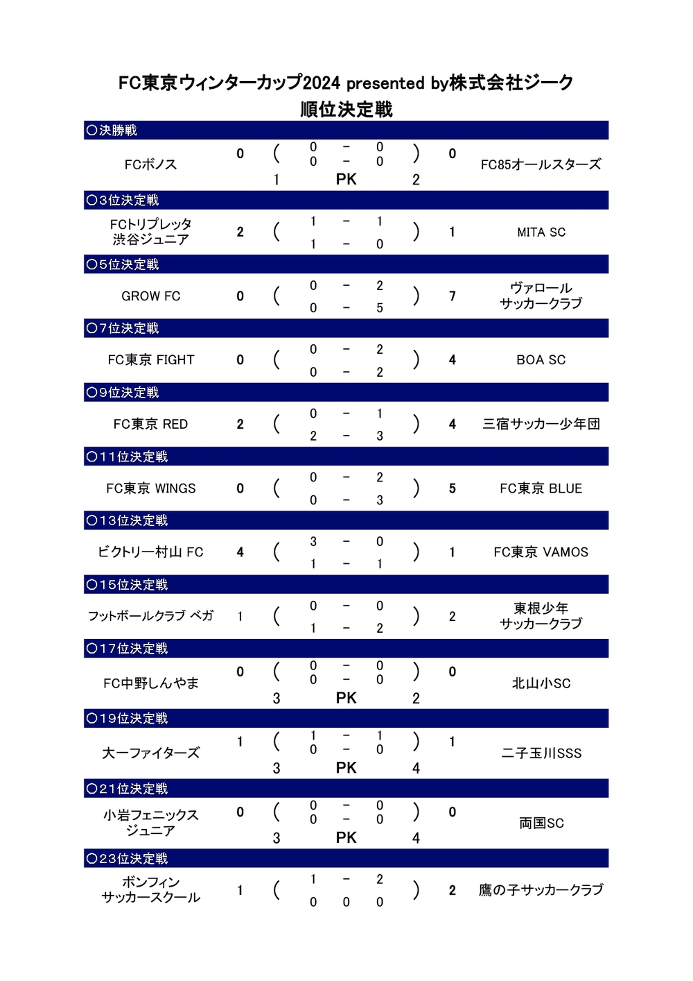 FC東京冬季盃2024 由Sieg Corporation贊助
