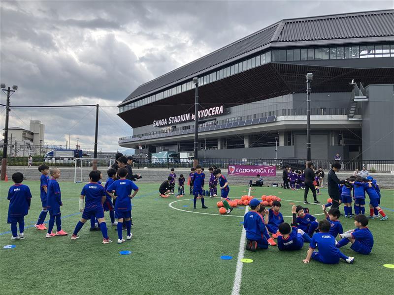 應援之旅第一天,在抵達體育場後與京都SANGA體育場的學員進行交流賽!