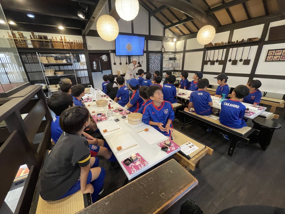 最後大家一起觀看師傅製作和菓子的過程,孩子們對師傅的巧手技藝感到「太厲害了!!」非常興奮!最後在店鋪前,和師傅一起拍了合照。