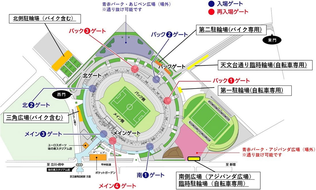 ※ 夜間比賽時無法通行武藏野森公園內。